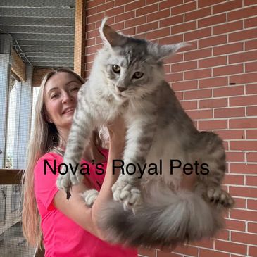 Our Maine Coons come from excusive European Lines, known for their messive size, stunning features, lion-like faces, and gentle temperment. These are the TRUE XXL European Giants - not the water-down Americal Version.